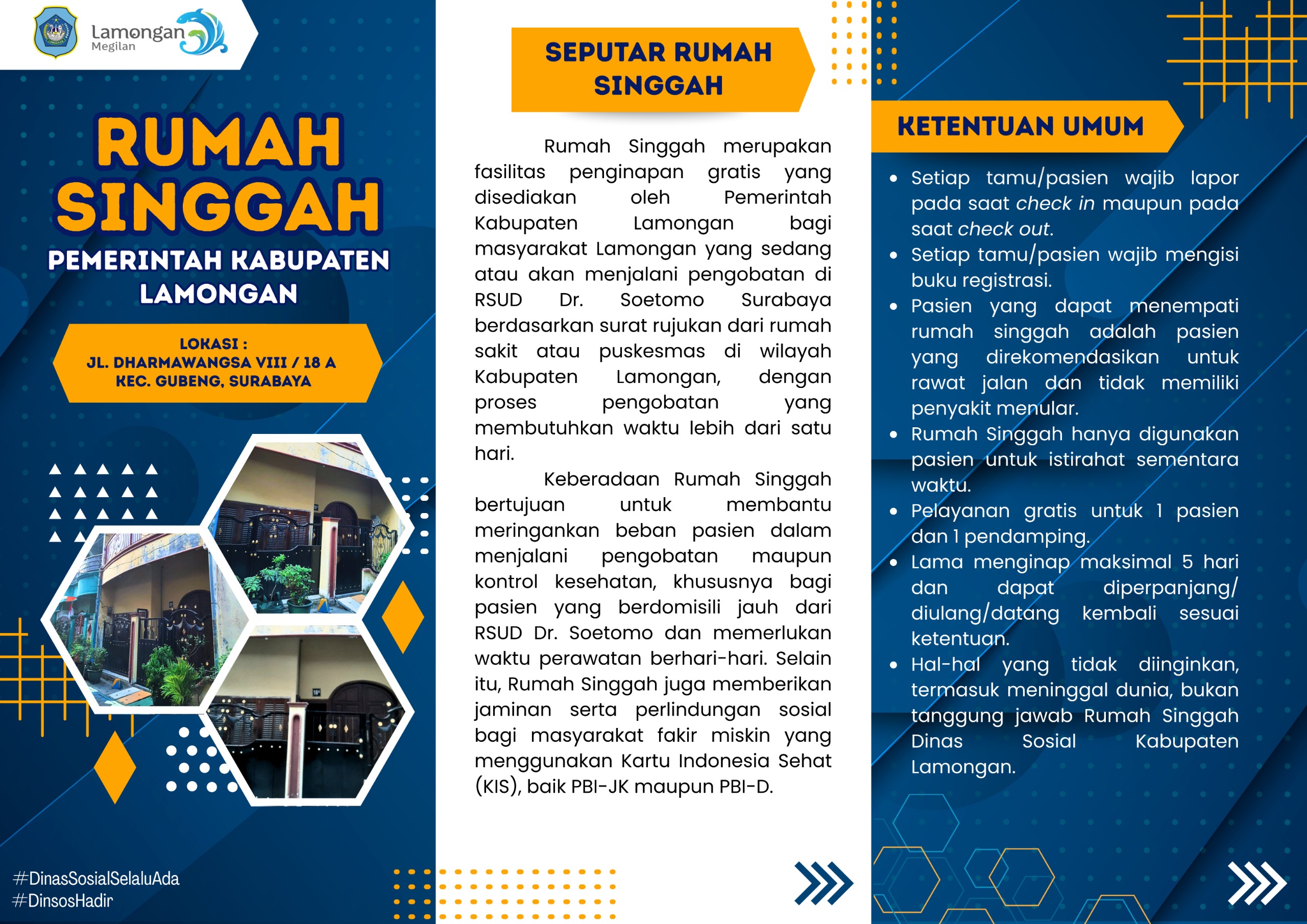 Fasilitas penginapan gratis disediakan oleh Pemerintah Kabupaten Lamongan bagi masyarakat Lamongan yang menjalani pengobatan di RSUD Dr.Soetomo Surabaya
